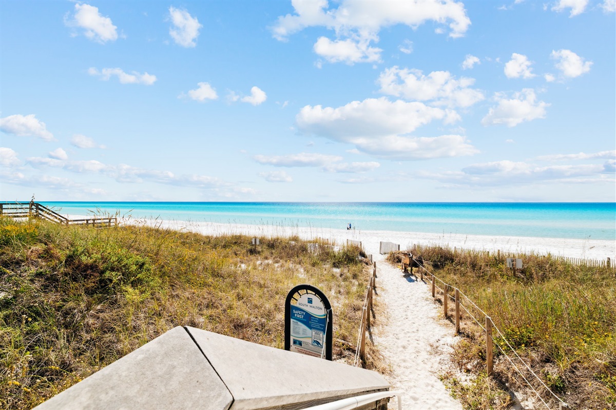 Dune Sands sits in the heart of Blue Mountain Beach, just down the road from the regional beach access- only a short 8-10 minute walk or a quick ride on the six-seater golf cart.